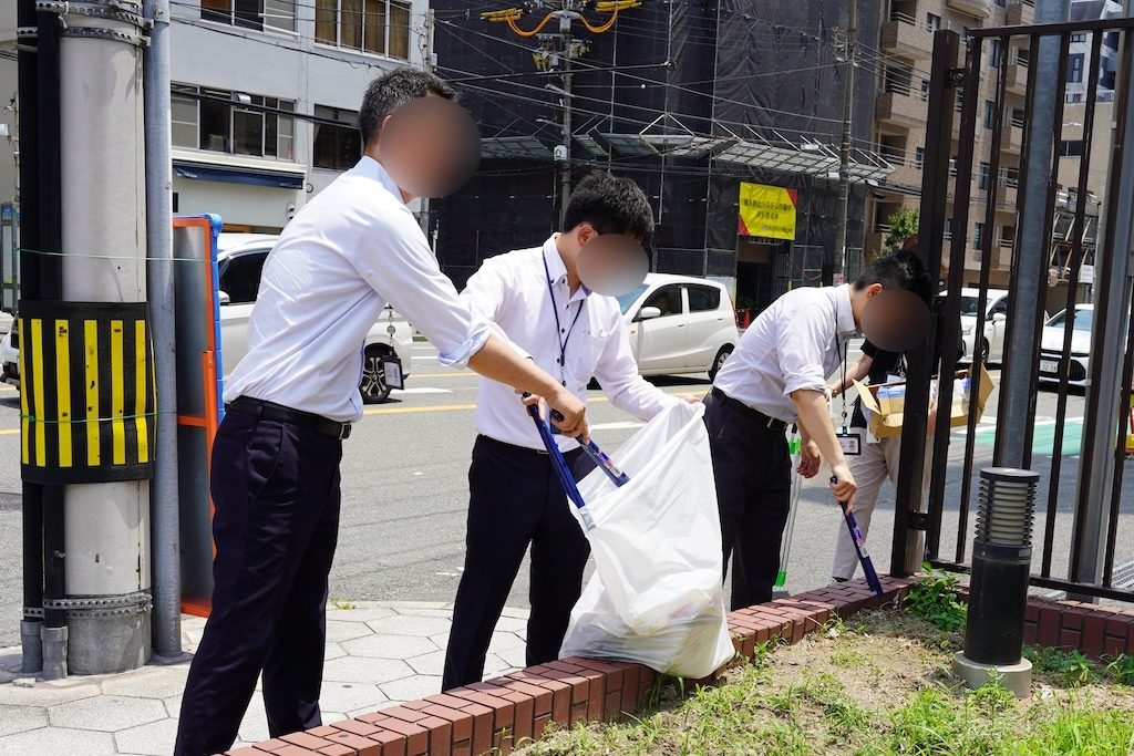 社内有志12名が参加し、大阪本社周辺の清掃活動を行いました。